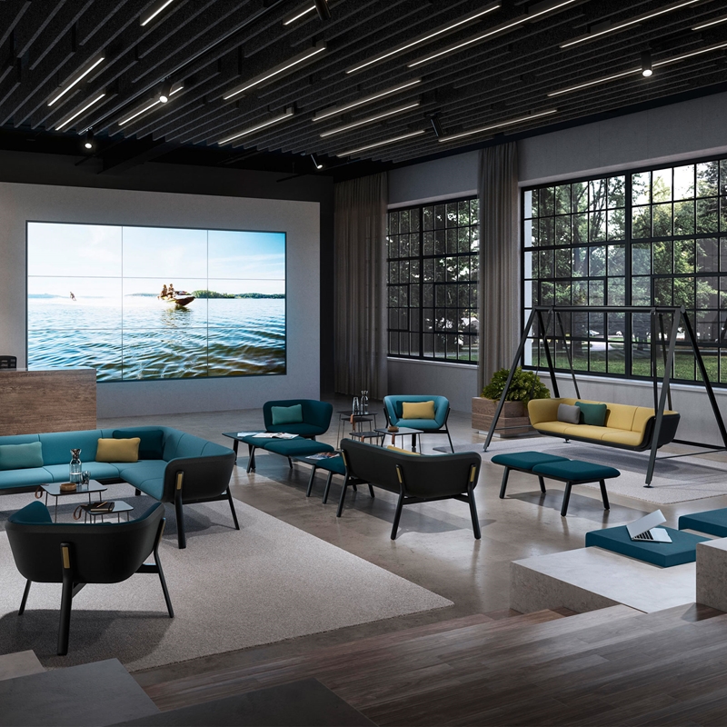 Може ли едно пространство да създаде впечатлението, че е сто различни пространства? Или офисите винаги трябва да изглеждат по един и същи начин? В крайна сметка хората, които работят в тях, не са еднакви. С HUB ние празнуваме това разнообразие и овладяваме баланса между намаляването на мебелите до най-необходимите и разработването на невероятно широка продуктова гама – със специфичната цел за генериране на творческа гъвкавост, която не може да бъде открита в никоя друга сравнима система. Серията HUB включва екрани с различни височини и ширини, мобилни и стационарни прегради с медийни връзки и стойки за бели дъски. Има различни дизайни на столове и дивани, както и опция 3+ 2 L-образна форма, всички от които осигуряват комфорт. Системата включва и пейки с и без места за съхранение, както и различни комплекти помощни маси. Служителите може също да искат малко спокойствие и тишина в Open Space – места, където шумът от колегите бива намален, така че да се постигне оптимална делова производителност. С HUB тези зони могат да бъдат създадени, без да се губи лекотата на оформлението на отворения офис. Използвайки заседателни модули, прегради, дивани и иновативна телефонна кабина, можем да ви предоставим възможности да се оттеглите от суматохата на стандартния офис. HUB предлага елементи, които са не само многофункционални, но са преди всичко нови концепции – като люлката HUB. Люлката, да – люлката! Тя задвижва концепцията за нова работа и внася нова форма в работната среда. Съчетана по различни начини с пейки, помощни маси и столове, зоната за срещи ще бъде най-важната пресечна точка във всеки офис. Техническа информация може да откриете тук.