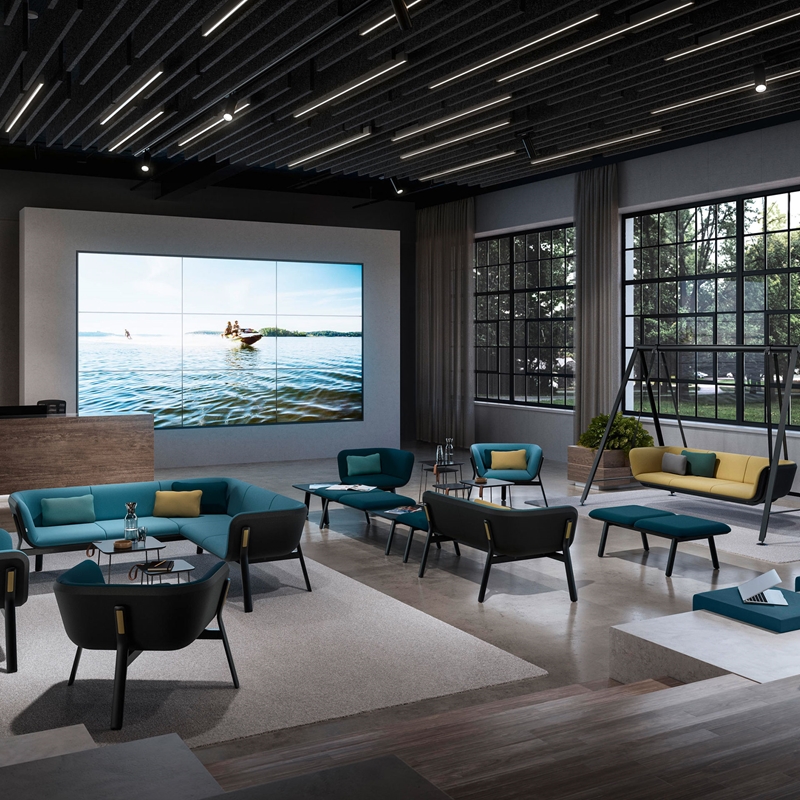 Може ли едно пространство да създаде впечатлението, че е сто различни пространства? Или офисите винаги трябва да изглеждат по един и същи начин? В крайна сметка хората, които работят в тях, не са еднакви. С HUB ние празнуваме това разнообразие и овладяваме баланса между намаляването на мебелите до най-необходимите и разработването на невероятно широка продуктова гама – със специфичната цел за генериране на творческа гъвкавост, която не може да бъде открита в никоя друга сравнима система. Серията HUB включва екрани с различни височини и ширини, мобилни и стационарни прегради с медийни връзки и стойки за бели дъски. Има различни дизайни на столове и дивани, както и опция 3+ 2 L-образна форма, всички от които осигуряват комфорт. Системата включва и пейки с и без места за съхранение, както и различни комплекти помощни маси. Служителите може също да искат малко спокойствие и тишина в Open Space – места, където шумът от колегите бива намален, така че да се постигне оптимална делова производителност. С HUB тези зони могат да бъдат създадени, без да се губи лекотата на оформлението на отворения офис. Използвайки заседателни модули, прегради, дивани и иновативна телефонна кабина, можем да ви предоставим възможности да се оттеглите от суматохата на стандартния офис. HUB предлага елементи, които са не само многофункционални, но са преди всичко нови концепции – като люлката HUB. Люлката, да – люлката! Тя задвижва концепцията за нова работа и внася нова форма в работната среда. Съчетана по различни начини с пейки, помощни маси и столове, зоната за срещи ще бъде най-важната пресечна точка във всеки офис. Техническа информация може да откриете тук.