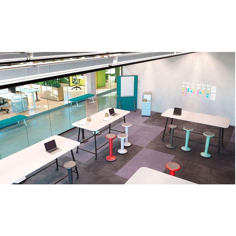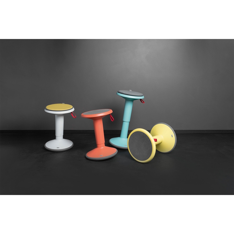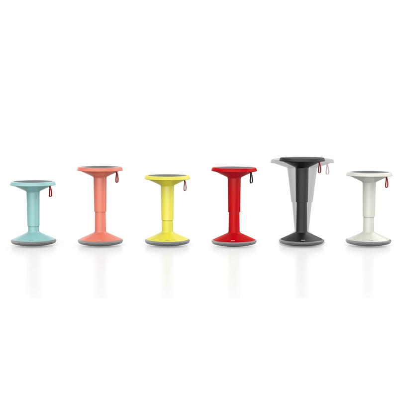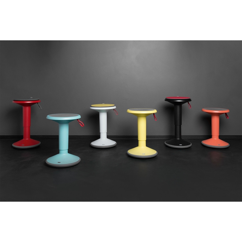 Удобна, практична и иновативна табуретка за тези от вас, които се грижат за своя офис комфорт. Възможност за регулиране на височината: от 450 до 630 mm, посредством червената текстилна лента. Мека седалка с размер 300 mm, базалтовосива. Противоплъзгаща основа. Произведена е от напълно рециклируеми материали. Цвят: червен. Гаранция: 10 години.