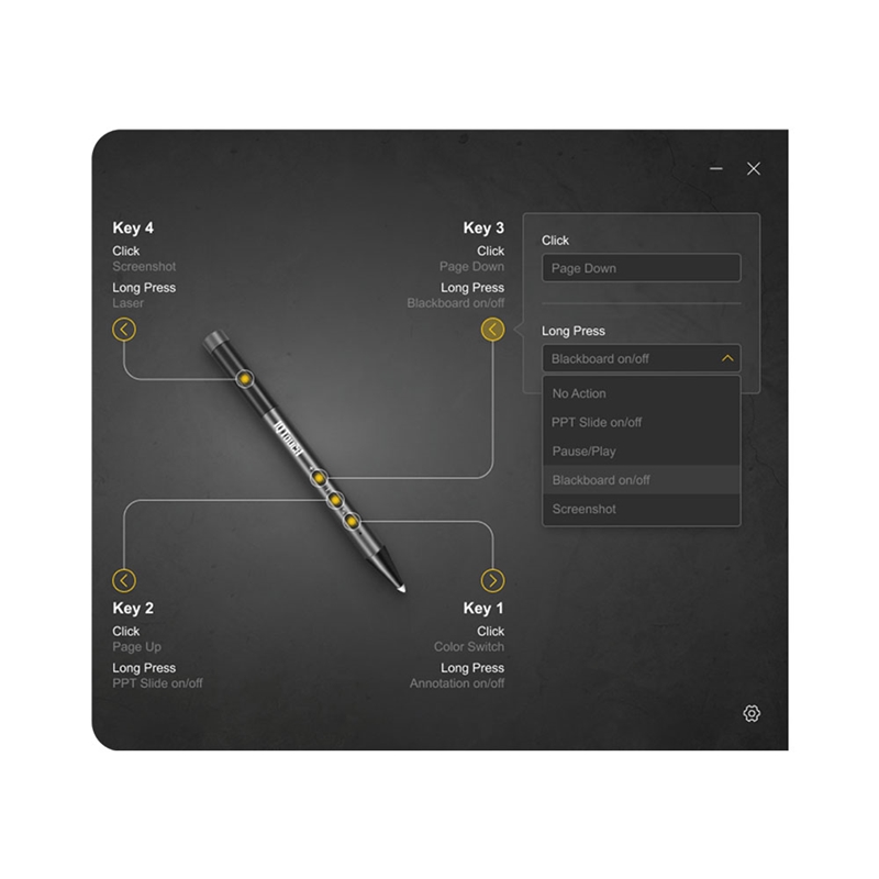Интерактивна писалка, идеална за употреба по време на презентации и срещи. Съвместимост IQ Smartpen е съвместима с Mac, Android и Windows. Няма значение какъв вид сензорен дисплей използвате, IQ Smartpen може да се настрои точно по него и така можете да се придържате към операционната система, с която сте запознати. Пояснявайте лесно по всяко време на презентацията Натиснете продължително клавиш 1, за да влезете в режим на пояснения. Без значение какво съдържание се представя в момента, можете незабавно да направите пояснение на екрана. Превключвайте цветовете и върховете на писалката Двойните накрайници са проектирани да поддържат различната финес на сензорните рамки. Освен това можете да превключвате цвета и ширината на писалката по желание. Представянето на различно съдържание с различни цветове и дебелини никога не е било по-лесно. Маркирайте ключови точки с помощни инструменти IQ Smartpen може да се използва като лазерна показалка или безжичен презентатор. Той също така предоставя разнообразие от инструменти за удобна употреба. Например, лупа, за да направите детайлите по-ясни и прожектори, за да подчертаете съдържанието и т.н. С една малка писалка под ръка, вашата презентация може да бъде представена по най-добрия начин. Персонализирани клавиши за по-голям избор Не се притеснявайте, ако не харесвате функциите на клавишите по подразбиране на IQ Smartpen, защото имате свободата да ги персонализирате. Предлагат се още функционални опции по ваш избор. Можете да изберете тези, които харесвате според различните нужди. Удобно USB зареждане С вградена 150mAh литиева батерия, IQ Smartpen поддържа до 50 000 пъти последователно натискане на бутони след всяко пълно зареждане. Универсалният дизайн на микро-USB интерфейс прави зареждането на писалката безпроблемно. Магнитно прикрепване на писалката към цялата рамка на дисплея.