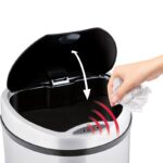 Безконтактен сензорен кош за смет, изработен от неръждаема стомана – 58 l. Безконтактният кош се характеризира със своята лесна употреба и стилен ергономичен дизайн. Изработен от качествени материали. Кошът използва фотоелектрическа технология. Капакът, активиран от сензора за движение, е напълно автоматичен и изключително хигиеничен (без докосване). Стабилен и надежден продукт с дълъг живот и ниска консумация на енергия.