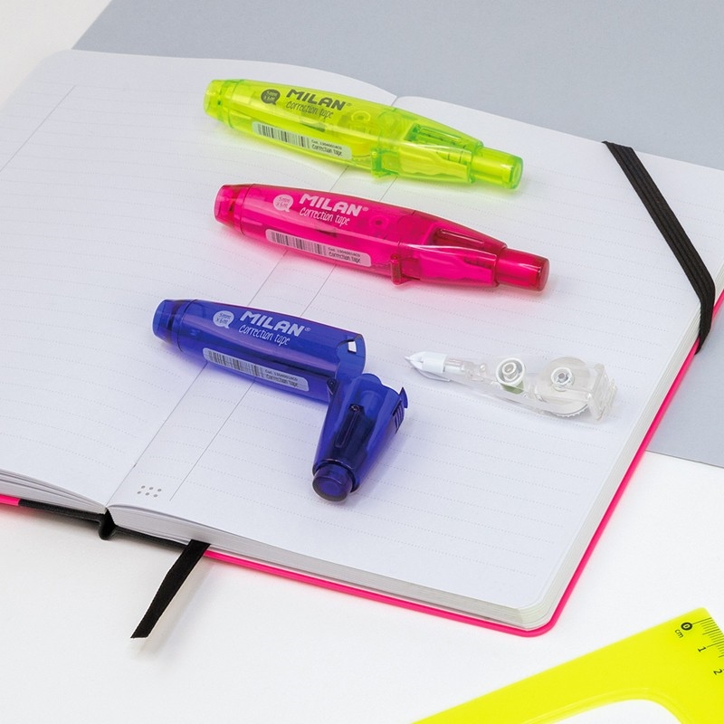 Автоматична коректор-лента Milan Acid. За бързи и прецизни корекции върху всички видове хартия, като не оставя следи върху фотокопия или факс