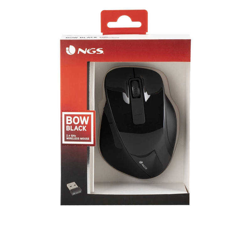 Ергономичната мишка включва безжична технология с честота 2.4 GHz и усъвършенстван оптичен сензор за прецизен контрол. Тя може да комуникира с компютъра от разстояние до 10 метра. Разполага с 6 бутона, за да направи работата с вашия лаптоп по-лесна и удобна. Елегантният лъскав черен цвят в комбинация с гумените страници, допринасят за стилния дизайн и за пълния комфорт при употреба. С възможност да избирате скоростта на мишката. “Plug and Play” – няма нужда от инсталация. Мишката NGS Bow е проектирана за удобна употреба от работещи с дясна ръка. Може да видите декларацията за съответствие тук. Може да видите инструкциите за употреба тук.