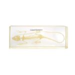 Реалистичният пластмасов скелет е произведен с цел наблюдение и изучаване структурата на гущера. Той е изключително издръжлив, а прозрачният акрил позволява да го оглеждате детайлно от всеки ъгъл. Акрилният блок няма да се счупи, дори при случайно изпускане. Поради естеството си, продуктът може малко да се различава от снимката. Размери: 165 х 20 х 80 mm. Тегло: 0.35 kg.
