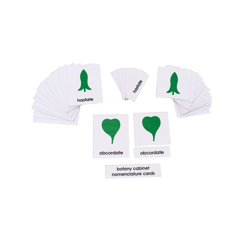 Богатата колекция от учебни помагала на Montessori включва материали за развитие, предназначени за работа с деца от 2 до 14-годишна възраст. Продуктите позволяват на децата да придобият знания, компетентност, умения и опит чрез собствените си действия, ангажиращи всички сетива. Учебните материали, включително математически, ботанически и географски карти, са в класически форми, изработени от висококачествено дърво. Някои от тях са изработени с пластмасови елементи.Образователна игра, която развива способността за разпознаване на на формите на листата (сравняване по двойки) и научаването на техните имена. Тя позволява на учениците да се упражняват и по четене, като свързват заглавие с формата на листото върху картата. Играта съдържа 2 комплекта с елементи с по 14 карти. Първият комплект се състои от карти на листа с наименования, определящи формата им. Вторият съдържа само карти с изображения на листата и отделно описание на техните форми. Всички елементи от комплектите са поместени в пластмасова опаковка. Общо съдържание на елементите от играта: – 14 карти с описания с размери 8 x 10 cm; – 14 карти без описания с размери 8 x 8 cm; – наименования на листните форми (бъбрековидна, триъгълна, обкордатна, копиевидна, кръгла, сагитална, елипсовидна, ланцетна, яйцевидна, шишарковидна, разперена, сърцевидна, обратно яйцевидна, ензимна.) с размери 2.5 cm. Размери на опаковката: 19 x 15 cm. Производствен материал: ламиниран картон и пластмаса. Предназначен за деца над 5-годишна възраст.