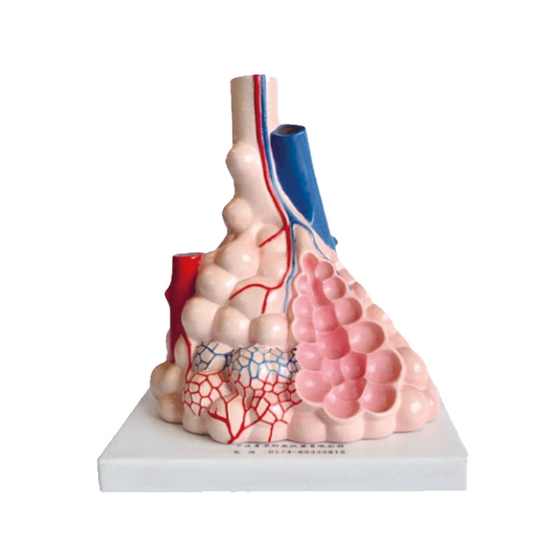 Разберете какво ви помага да дишате и как го прави! С модела на част от белодробния лоб, показващ алвеолите, ще се запознаете в детайли с вашия бял дроб и ще разберете как функционира и защо е важно да работи правилно! Ще видите всички анатомични детайли на белодробните алвеоли и бронхиоли, както и на капилярните съдове, артериолите и вените. Размери: 21 х 15 х 23 cm.
