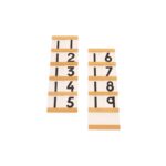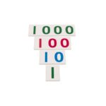 Богатата колекция от учебни помагала на Montessori включва материали за развитие, предназначени за работа с деца от 2 до 14-годишна възраст. Продуктите позволяват на децата да придобият знания, компетентност, умения и опит чрез собствените си действия, ангажиращи всички сетива. Учебните материали, включително математически, ботанически и географски карти, са в класически форми, изработени от висококачествено дърво. Номерирани карти с цветни числа в съответствие с методологията на математическо образование Монтесори. Комплектът учи да се създават многоцифрени числа. Под формата на дървени плочи, картите изобразяват цифри в следните цветове: зелено – единици, синьо – десетки, червено – стотици и зелено – хиляди. Съдържание: – 1 карта с единици; – 1 карта с десетици с размери 7 x 0,5 x 5,5 cm; – 1 карта със стотици с размери 11 x 0,5 x 7 cm; – 1 x карта с хиляди с размери 16,5 x 0,5 x 7 cm. Размери кутията: 25 х 3 х 10 cm. Предназначен за деца над 4-годишна възраст.
