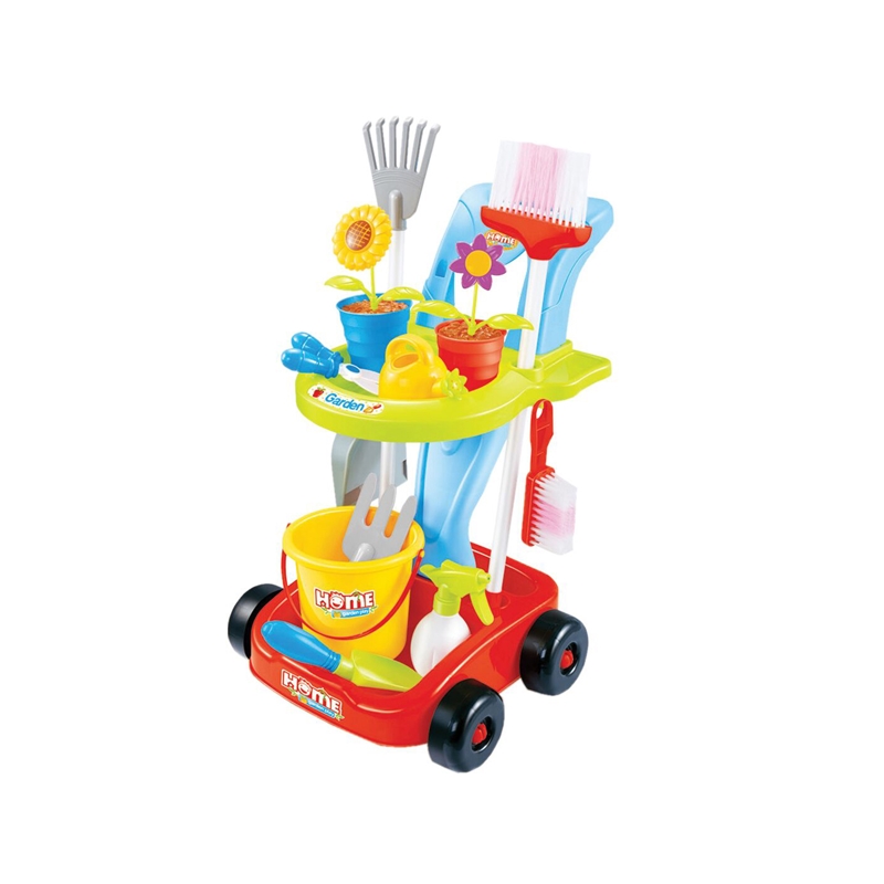 Количката на градинаря е набор от най-важните принадлежности за отглеждане на растения. Ще откриете гребла, ножици, лейка, кофа и много