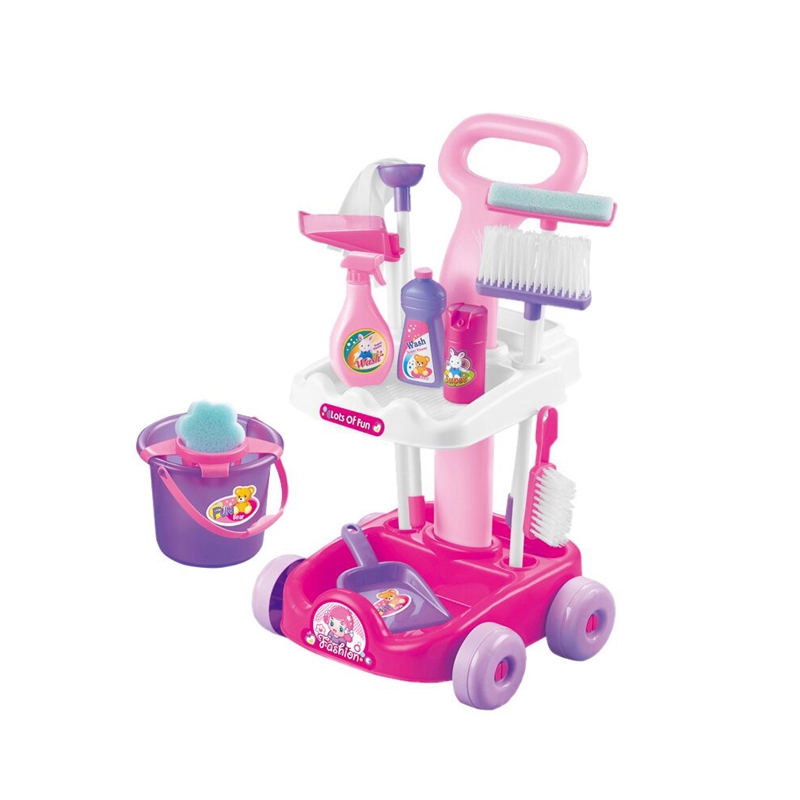 Комплектът с принадлежности за почистване е количка с всички необходими приспособления за малките деца. Играчката се състои от елементи за повърхностна грижа, както и контейнери за почистващи продукти. Брой елементи 12 + количка. Възраст: 3+