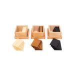 Богатата колекция от учебни помагала на Montessori включва материали за развитие, предназначени за работа с деца от 2 до 14-годишна възраст. Продуктите позволяват на децата да придобият знания, компетентност, умения и опит чрез собствените си действия, ангажиращи всички сетива. Учебните материали, включително математически, ботанически и географски карти, са в класически форми, изработени от висококачествено дърво. Някои от тях са изработени с пластмасови елементи. Комплектът съдържа 3 кутии, като във всяка има 10 дървени дъски. Помага за развиване на възприятието лек-тежък. Най-тежките дъски са в най-тъмен цвят, а най-леките – в най-светъл. С помощта на тези дъски децата не само развиват концентрация и мускулна координация, но също така придобиват и усъвършенстват способността да различават тежестта с ръце. Те също така се запознават с термините, свързани с понятието за тегло: тежко – леко, грамадно – малко, тежко, по-тежко, по-леко. Съдържание на опаковката: 30 елемента. Материал: дърво. Размери: 13 х 13 х 7 cm. Предназначен за деца над 3-годишна възраст.