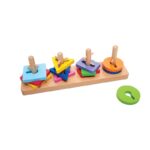 Комплект от дървена мозайка с габърчета, коркова дъска и дървено чукче. Размери: 20 х 20 х 4 cm. Подходящо за деца над 3-годишна възраст.Може да