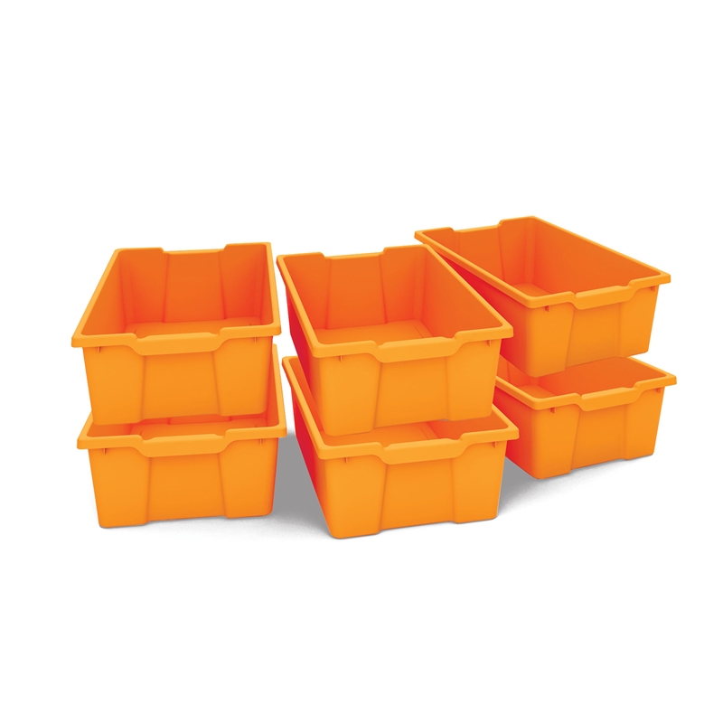 Компактни пластмасови тави за съхранение на играчки и различни научни аксесоари. Комплектът съдържа 6 броя тави. Цвят: оранжев.