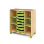 Компактни пластмасови тави за съхранение на играчки и различни научни аксесоари. Комплектът съдържа 8 броя. Цвят: оранжев.