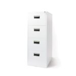 Корпусът на шкафа е изработен от 0.7 mm прахово боядисана стомана. Горна част – стъклена врата с брава; долна част – стоманена врата с ключалка. Подвижни метални рафтове. Размери: 90 х 40 х 185 cm.