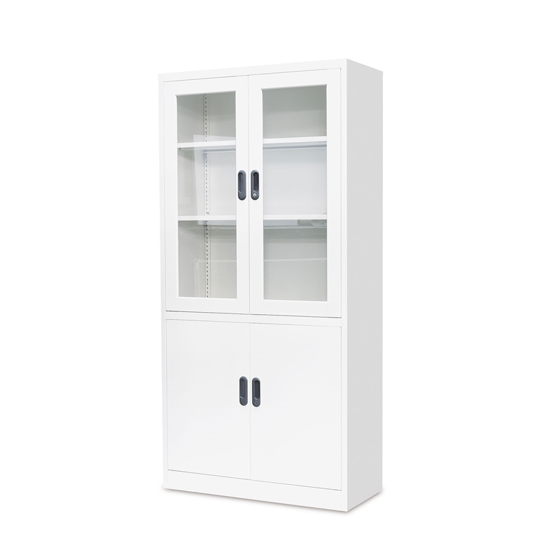 Корпусът на шкафа е изработен от 0.7 mm прахово боядисана стомана. Горна част – стъклена врата с брава; долна част – стоманена врата с
