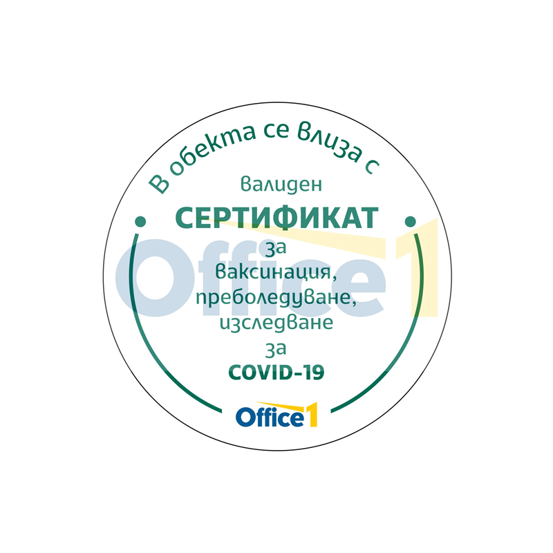 Бъдете първият написал отзив за “Office 1 Стикер “Зелен сертификат“, кръг, ø 30 cm, вариант 2”