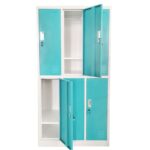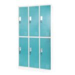 Метален гардероб с 6 метални врати. Всяка едно отделение има по един рафт. Има възможност за заключване – уникално за всяка врата. Гардероба има вентилационен отвор. Размери: 185 x 90 x 45 cm. Размери отделение: 85 x 27 x 41 cm. Металния гардероб е боядисан прахово, вратите са в тюркоазен цвят. Гаранция – 2 години.Може да видите, начина на сглобяване от тук. Продуктът се доставя разглобен в кашон с инструкции за монтаж.