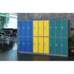 Метален гардероб с 6 метални врати. Всяка едно отделение има по един рафт. Има възможност за заключване – уникално за всяка врата.