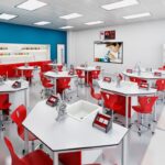 Лаборатория по химия и биология Quin има захранващи устройства и устройства за измерване, необходими за експериментите на всяка ученическа