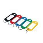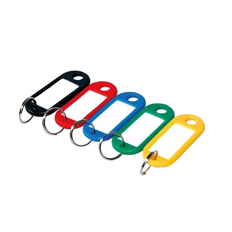 Пластмасови ключодържатели с етикет за надписване. За подредба и лесно различаване на ключове. С прозрачна пластмасова плака за предпазване на текста върху етикета. 20 броя в опаковка. Цветове асорти.