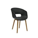Стабилна метална конструкция в черен цвят. Седалка и облегалка от многослойна букова дървесина в натурален цвят. Възможност за