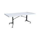 Плот изработен от ПДЧ с дебелина 18 mm. С меламиново покритие и 1 mm ABS кант.Метална прахово боядисана основа с кръгъл профил с размер ø60 mm.