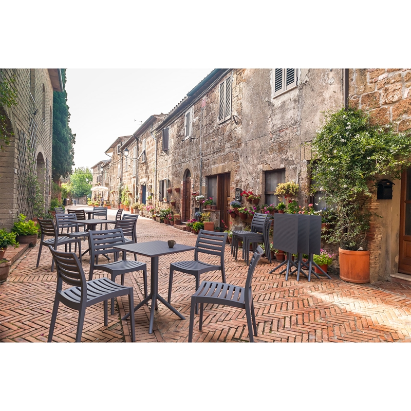Качествен и устойчив материал Сгъваемата висока маса е изработена от качествен материал – смола, който е устойчив на атмосферни влияния. UV