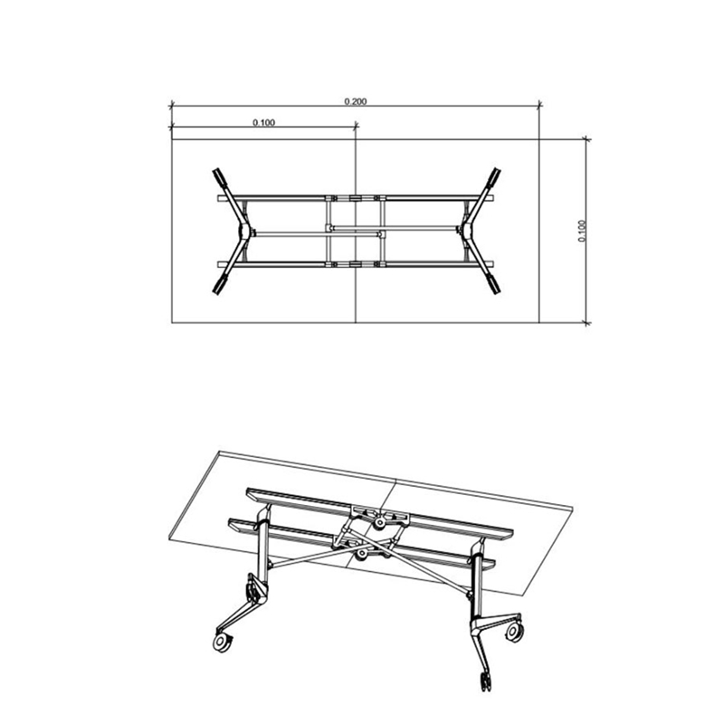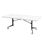 Конферентна маса RFG Butterfly, мобилна, сгъваема, 200 x 100 x 74 cm, правоъгълен плот, ПДЧ 18 mm, черна, бели метални крака