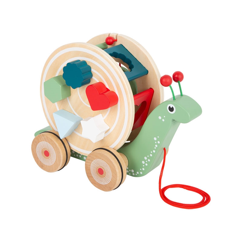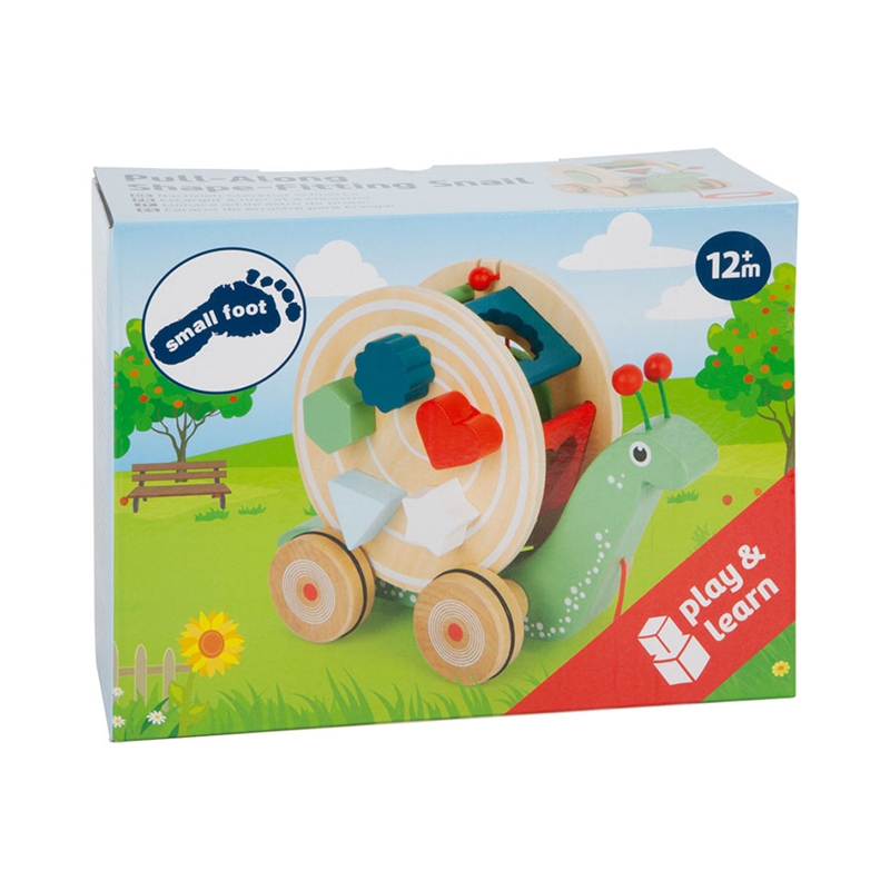 Small Foot Играчка за дърпане Охлюв, със сортер, дървен