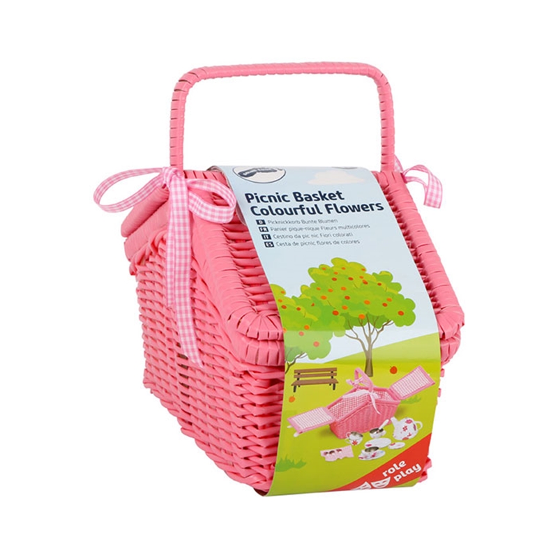 Забавление за пикник с дизайн от 70-те години. Кошницата, изработена от ратан, пази тенекиените съдове до следващия пикник и също така предлага достатъчно място за малки лакомства. Идеалният спътник за излети с куклите!