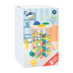 Тази добре оформена дървена кула представлява изключително забавна игра! След като ударите 3-те цветни дървени топки, те ще хукнат по стъпалата с весело тракане! Играта стимулира двигателните умения и насърчава децата да играят отново и отново. Размери: височина – 26 cm x ø 18 cm; дървени сфери – ø 4.5 cm. За деца над 12-месечна възраст.