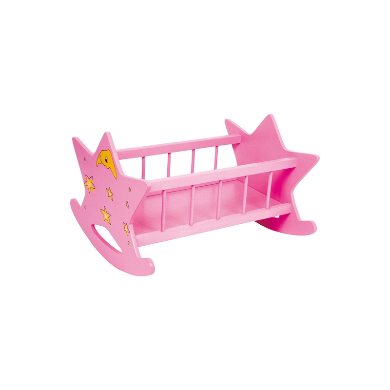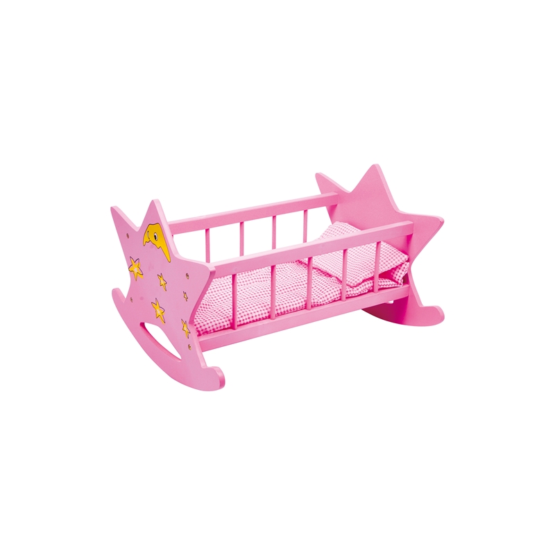 С тази страхотна люлка куклите ще се чувстват изключително уютно. Изработена от висококачествено дърво. „Майките“ на куклите могат да наблюдават „бебетата“ си през страничната решетка и винаги да си пазят децата. Гърбът и главата на люлката имат звезден дизайн и позволяват да се люлее напред-назад. Скъпи кукли, направете си уют!