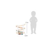 Дървена състезателна писта със стабилна основа. Осигурява бързина на четирите малки дървени колички, които се спускат по рампите. По време на пътуването си от етаж на етаж, количките изпълняват забавни салта и доставят много забавление. Боядисана в бяло, с части от естествено дърво, тази писта наистина привлича вниманието и се вписва идеално във всяка детска стая. Насърчава развитието на двигателните умения, както и координацията между ръцете и очите, като същевременно премахва скуката в детската стая!