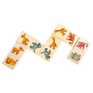 Нека играта започне! Играта на домино, изработена от FSC® 100% сертифицирано дърво, с големите си плочки и веселите сафари животни е едно