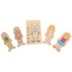 Какво се крие под различните слоеве? Децата могат да тренират не само двигателните умения или разпознаването на формата и цвета. На 4-те нива, тялото е показано от скелета до облеченото дете. 5-те малки изображения ще ви помогнат да направите мозайката на 4-те слоя със 7 части всеки. Пъзелът е образователно забавление, изработен е от висококачествен шперплат с ярки и красиви цветни изображения! Размери: 29 x 17 x 2 cm. За деца над 4-годишна възраст.