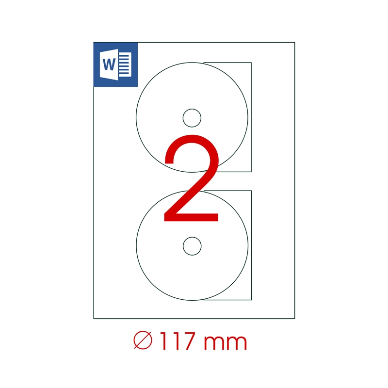 Хартиени самозалепващи се етикети за дискове. По 100 листа в опаковка. 2 етикета на лист. Подходящи за лазерен и мастиленоструен печат.