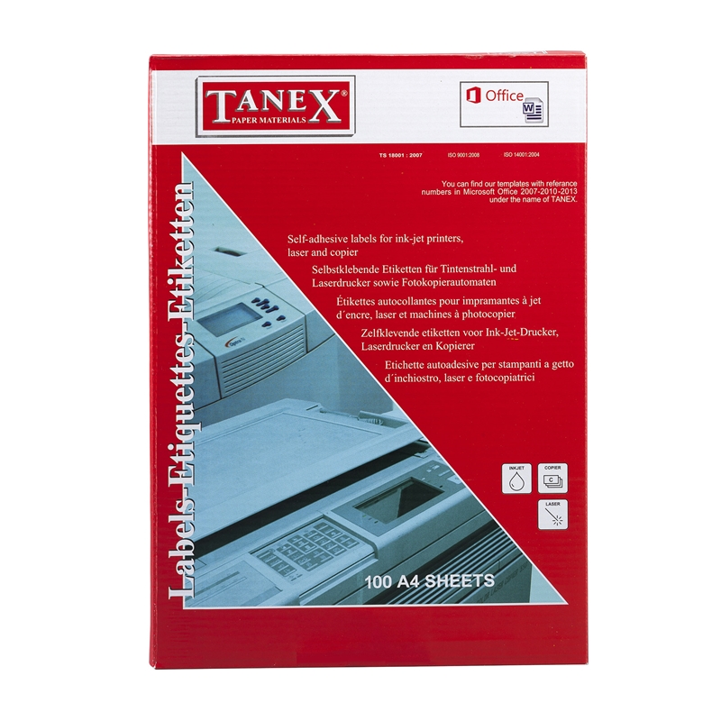 Tanex Самозалепващи се етикети, A4, за CD/DVD, диаметър 117 mm, 100 листа